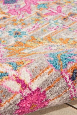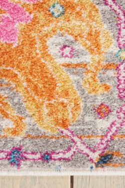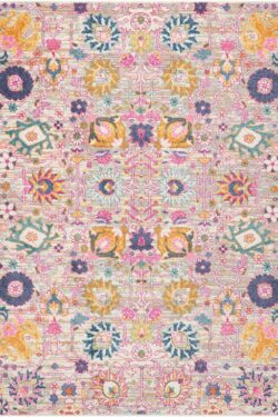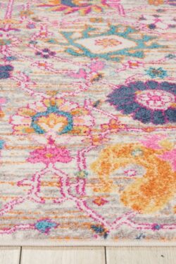 Imaginative flowers in lush, saturated pigments grace this Passion Collection area rug with a beautifully colourful presence. The artful palette mixes fuchsia, petal pink, apricot and lemon on a patinated background of denim blues. Hints of Persian antiquity in a modern interpretation makes this stunner a versatile statement piece that brings Passion to your lifestyle.