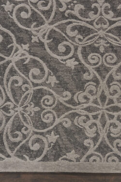 Damask rugs are woven on Jacquard power looms in India exclusively by Nourison using a blended polyester and cotton yarn to produce a 5mm thick flat woven chenille finish. Featuring classic French inspired designs in delicate fleurs-de-lys and intricate curlicue patterns that are sure to add classic finesse with a deft contemporary feel to any room in the home. Conceived in a palette of perfectly balanced contemporary neutrals, these rugs are supremely versatile being both dramatic yet subtle. Edged with slender ribbon borders for a modern finish. Their flatweave construction also makes them highly durable and ideal for putting under tables and chairs.