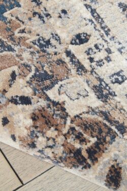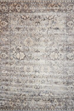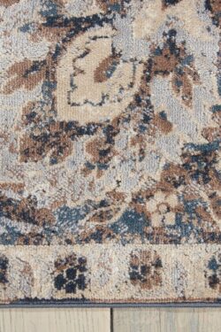 Subtle shades of slate, white, sky, bone and crimson conspire together to lend an air of extraordinary enchantment to a traditional elaborately bordered bloom, blossom and leaf design that is gently washed to craft the terrific tone and texture of a centuries-honoured antique.