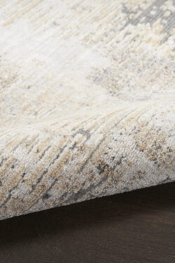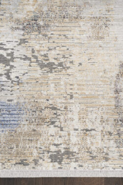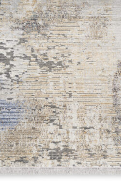 Add a cool and refined look to your home with this modern rug from the Abstract Hues Collection. The abstract design, presented in shades of grey, rust, and blue, has a subtly ribbed high-low pile that offers intriguing texture, which is finished at both ends with a short fringe. Made from polyester yarns enhanced with a silk-like sheen that reflects and absorbs light. Runner rugs do not include the fringe.