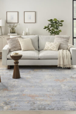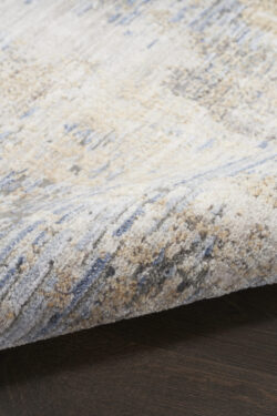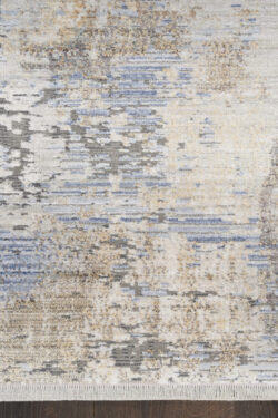 Add a cool and refined look to your home with this modern rug from the Abstract Hues Collection. The abstract design, presented in shades of grey and blue, has a subtly ribbed high-low pile that offers intriguing texture, which is finished at both ends with a short fringe. Made from polyester yarns enhanced with a silk-like sheen that reflects and absorbs light. Runner rugs do not include the fringe.
