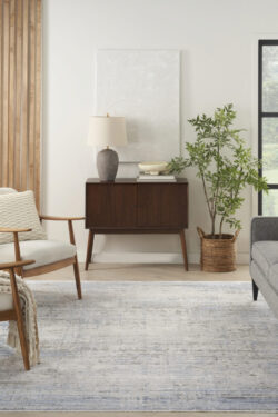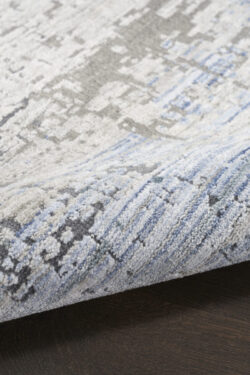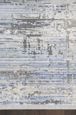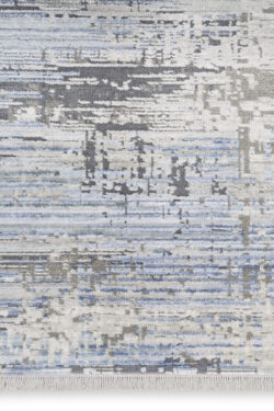 Set the tone for a calm and collected space with this modern rug from the Abstract Hues Collection. Presented in shades of blue and grey, this abstract rug brings relaxing energy to your living room, bedroom, hallway, kitchen, or dining room. Made from softly textured polyester with an attention grabbing sheen and fringe edges. Runner rugs do not include the fringe.