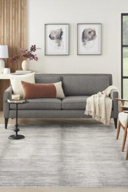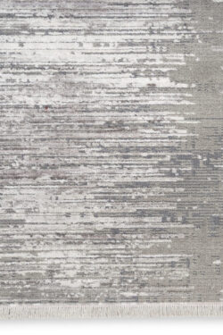 Complement your décor with the pleasing colours and soft texture of this modern grey rug from the Abstract Hues Collection. The abstract design has a short fringe at both ends and is enhanced with a high-low pile that adds subtle dimension. Made from polyester yarns with a silky sheen that beautifully captures and reflects shifting light. Runner rugs do not include the fringe.