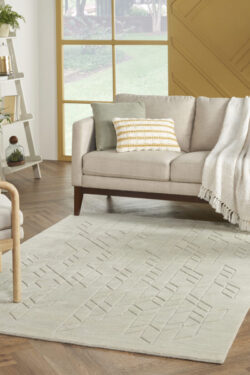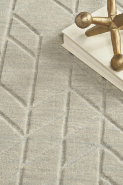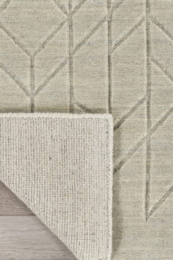 This modern sage rug from the Alessia Collection adds cozy style to your decor. Effortlessly blending style and function, this neutral rug features a heathered ground that adds nuanced colour variations, a carved geometric pattern that offers a subtle layer of depth, and a medium-thick pile that has a softly cushioned texture. Handmade from 100% European wool; no backing.