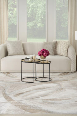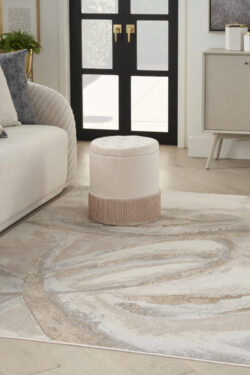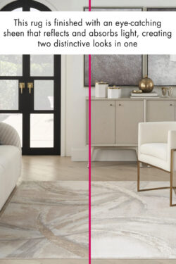 This abstract rug from the Inspire Me! Home Decor Brushstrokes Collection adds standout style to your home. The freeform pattern, inspired by modern artistry, helps you create a foundation for your own creative haven. Presented in shades of beige and grey, this contemporary rug is enhanced with a high-low texture and metallic shimmering accents designed to turn heads.