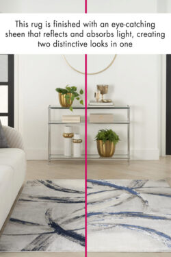 The Inspire Me! Home Décor Brushstrokes Collection of area rugs brings distinctive style to your space. With softly textured patterns brilliantly illuminated by an attention-grabbing metallic sheen, these abstract rugs embody glamour. Brushstrokes is enhanced with subtle high-low textural variations and is made from a polypropylene and polyester blend for a look that is both exquisite and functional. Choose from a variety of colors and patterns to create a beautiful statement in your living room, bedroom, or hallway.