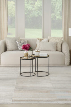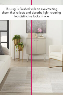 The Inspire Me! Home Décor Brushstrokes Collection of area rugs brings distinctive style to your space. With softly textured patterns brilliantly illuminated by an attention-grabbing metallic sheen, these abstract rugs embody glamour. Brushstrokes is enhanced with subtle high-low textural variations and is made from a polypropylene and polyester blend for a look that is both exquisite and functional. Choose from a variety of colors and patterns to create a beautiful statement in your living room, bedroom, or hallway.