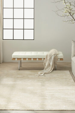 Textured, abstract, linear. This modern and neutral ivory rug from the Calvin Klein Linear Collection infuses distinctive energy into your space. Handmade from a blend of wool and silky Luxcelle in a high-low, cut and loop pile for added dimension.