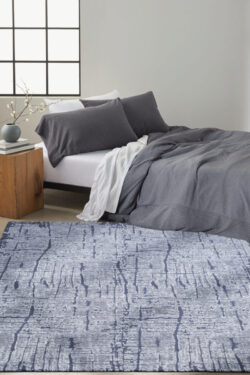 A calming touch. This Calvin Klein Safi Collection area rug features an abstract design that adds a sense of movement to your space. The ribbed pile offers unique texture in a navy blue and ivory palette. Machine-made for easy cleaning and lasting style.