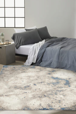 Feel at ease. Soothing pools of color create a relaxed vibe with this abstract rug from the Calvin Klein Infinity collection. Featuring a soft and inviting texture in neutral grey, blue, and ivory. Machine-made for lasting style from softly textured, easy-clean fibers.