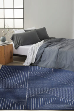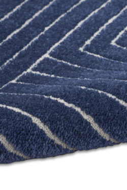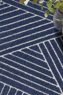 With a sleek, carved linear pattern in navy-blue and ivory, this geometric rug from the Calvin Klein Balance collection offers a sense of depth. The sophisticated design is machine-made from softly textured fibers that are easy to clean. Low-profile, non-shedding.
