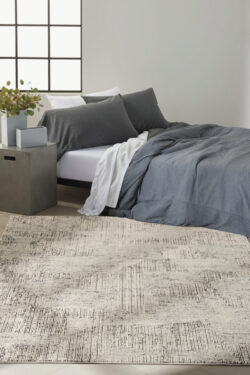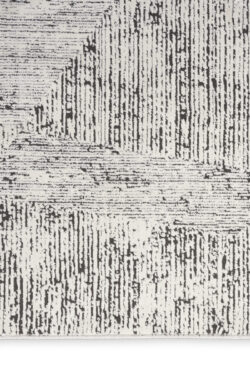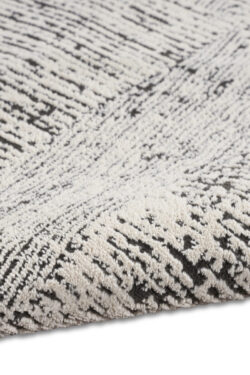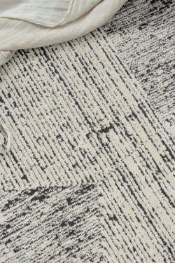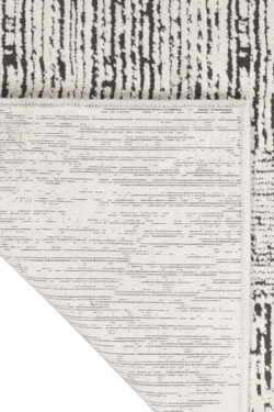 This abstract rug from the Calvin Klein Irradiant Collection brings minimalist energy to your home. An overlapping linear pattern, presented in cream and black tones, is enhanced by subtle texture variations and a vivid sheen. Machine-made from polyester for modern living.