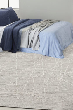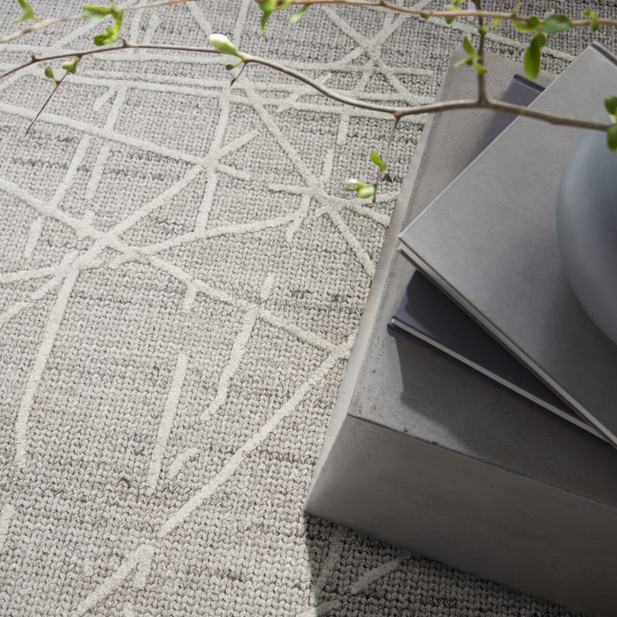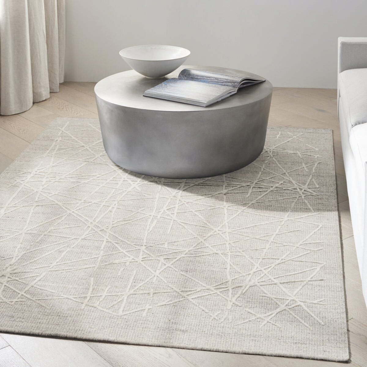 Ground any space in the sophisticated style of this grey Calvin Klein Wander rug. Overlapping raised lines create depth, while a space-dyed ground adds a rhythmic tonal effect. Handmade from New Zealand wool with silky viscose accents
