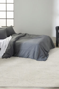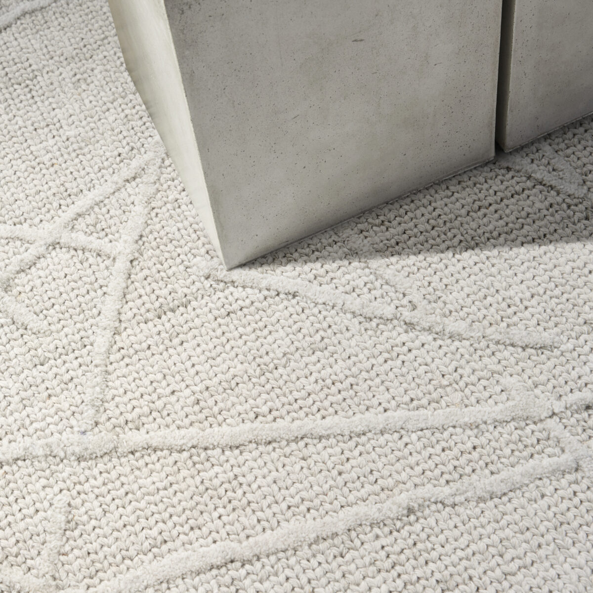 Ground any space in the sophisticated style of this grey Calvin Klein Wander rug. Overlapping raised lines create depth, while a space-dyed ground adds a rhythmic tonal effect. Handmade from New Zealand wool with silky viscose accents.