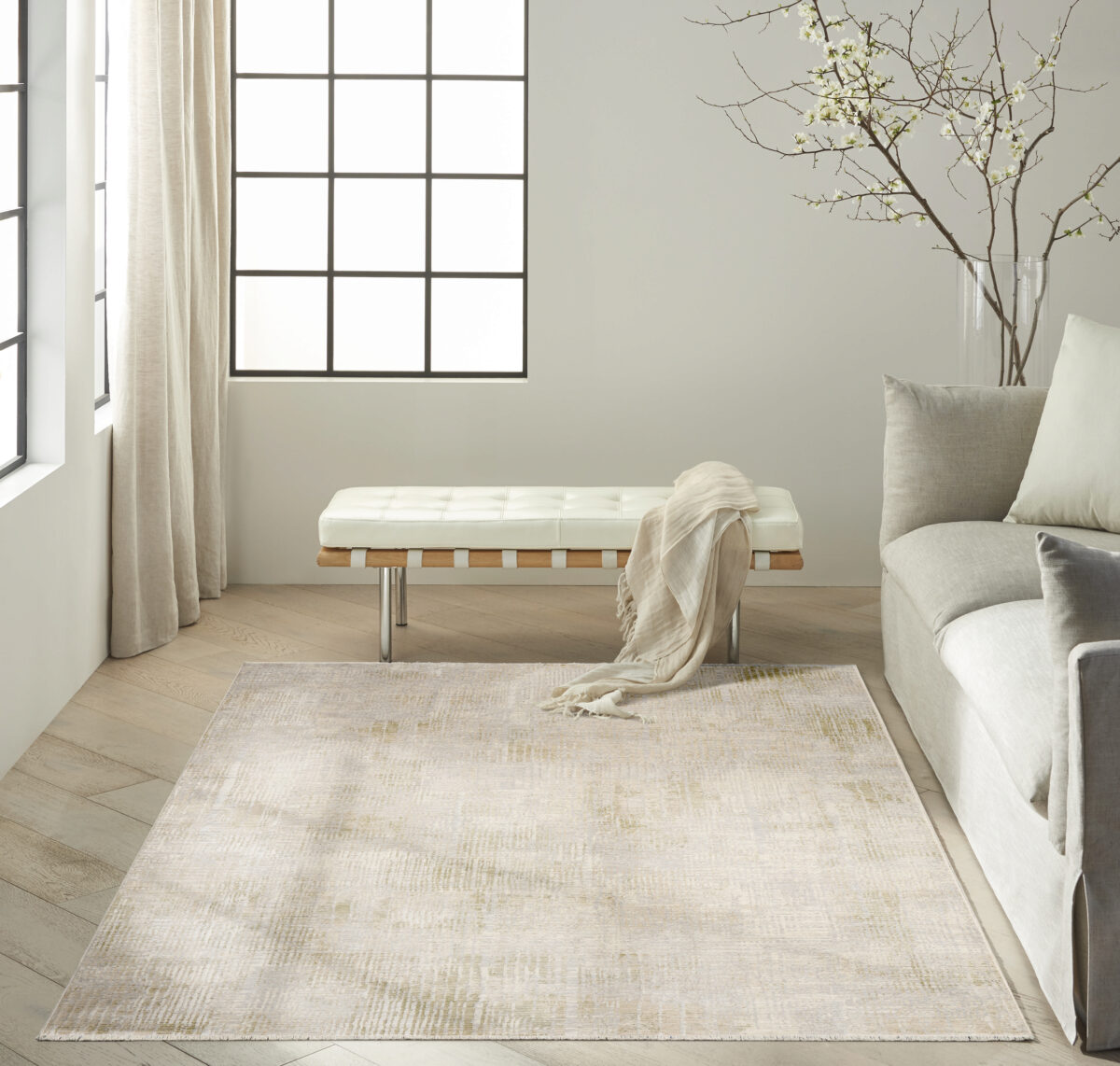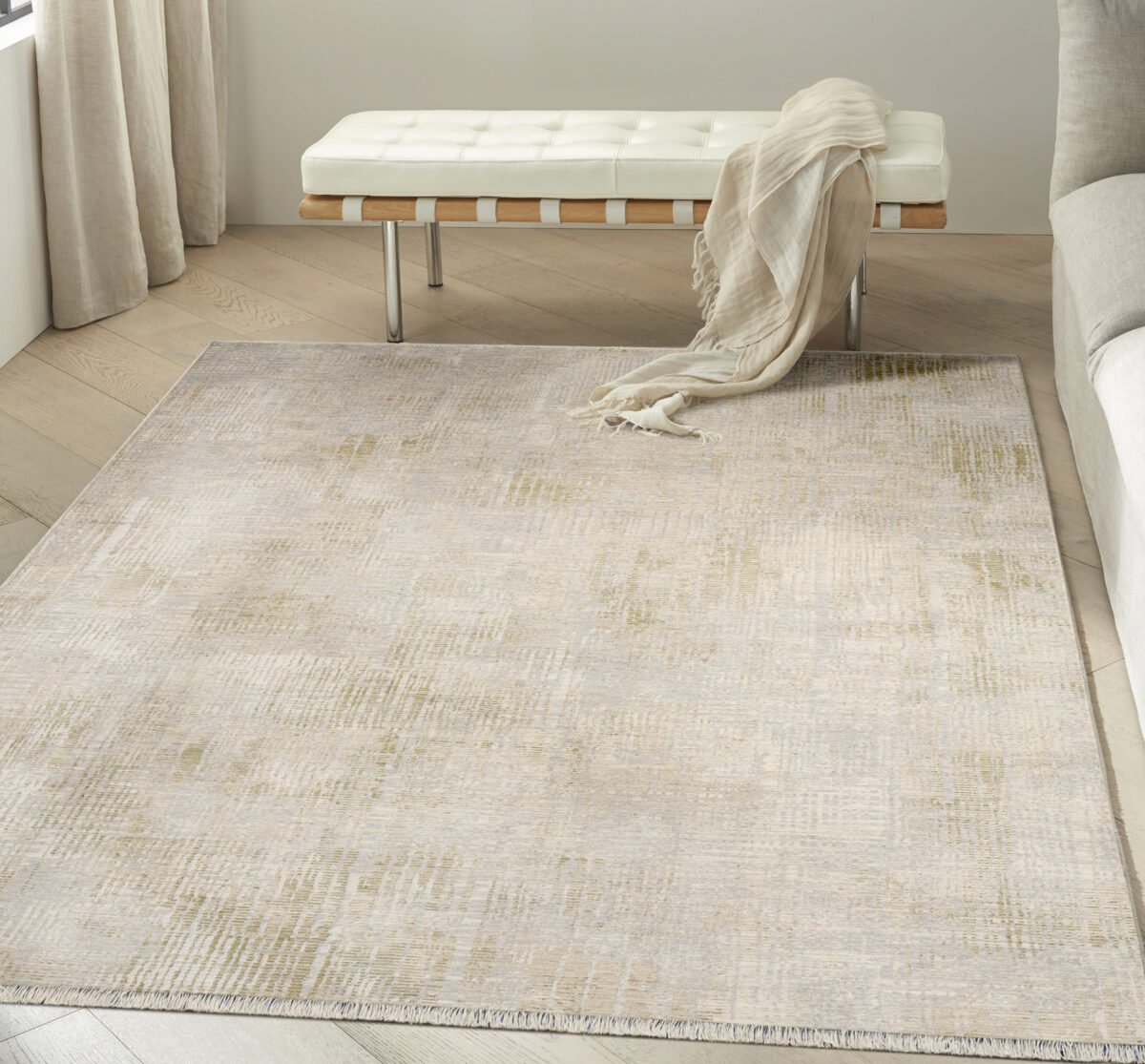 Bring quiet movement to your space with this rug from the Calvin Klein Drift collection. The abstract tonal cross-hatch pattern adds dimension to your room, complemented by short fringe for added texture.