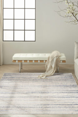 Invite a breezy, laid-back feel to your space with this rug from the Calvin Klein Drift collection. The striated, abstract pattern showcases a hazy blue and grey palette, with short fringe edges that add subtle texture.