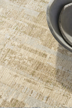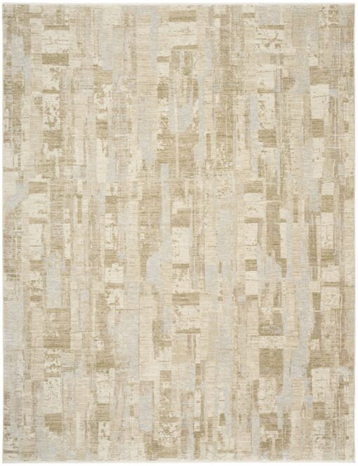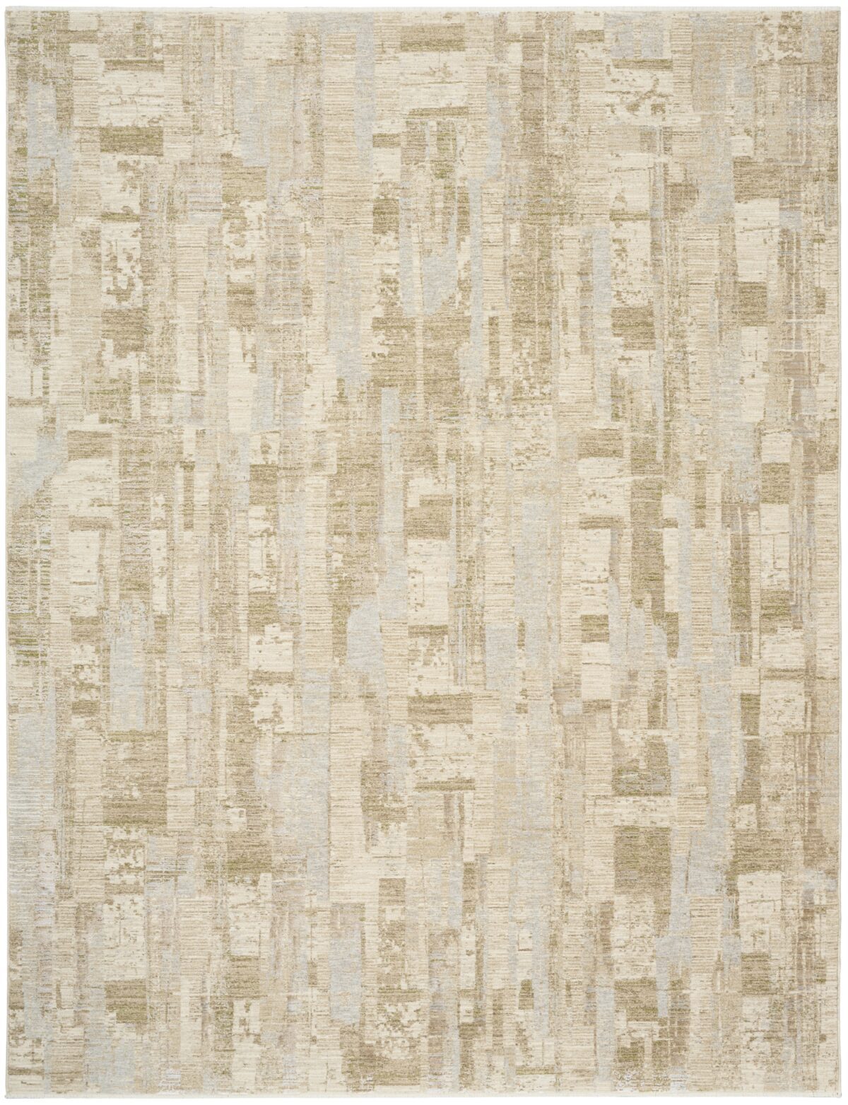 Invite a sense of calm with the beige and grey rug from the Calvin Klein Drift collection. The abstract pattern uses tonal striations that create a textured look with a relaxing effect, finished with a short fringe.