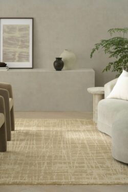 An understated design that grounds any space. The Calvin Klein Latitude abstract rug in taupe features a rich, elegant sheen and short fringe finish. Made from softly textured polyester.