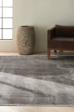 Swirling linear patterns create a marbleized effect on this CALVIN KLEIN Balian area rug. The loom-woven, dense, low pile has a silk-like sheen. Luxurious, carved details and an elegant fringe finish add texture. In versatile, modern grey.