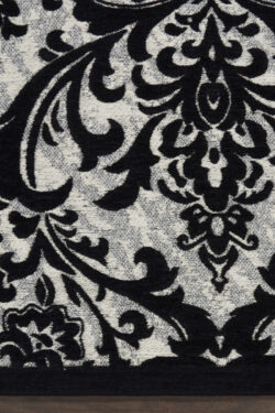 Damask rugs are woven on Jacquard power looms in India exclusively by Nourison using a blended polyester and cotton yarn to produce a 5mm thick flat woven chenille finish. Featuring classic French inspired designs in delicate fleurs-de-lys and intricate curlicue patterns that are sure to add classic finesse with a deft contemporary feel to any room in the home. Conceived in a palette of perfectly balanced contemporary neutrals, these rugs are supremely versatile being both dramatic yet subtle. Edged with slender ribbon borders for a modern finish. Their flatweave construction also makes them highly durable and ideal for putting under tables and chairs.