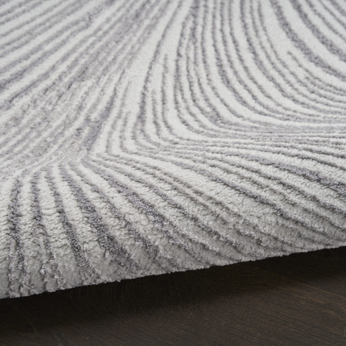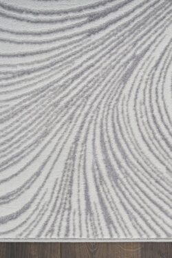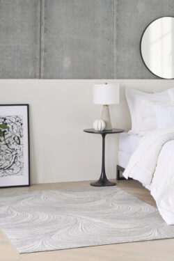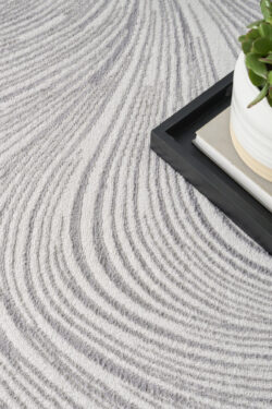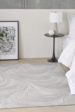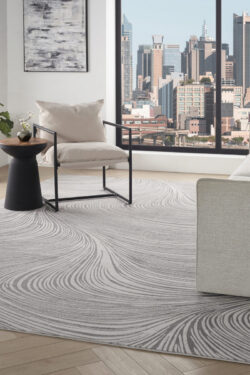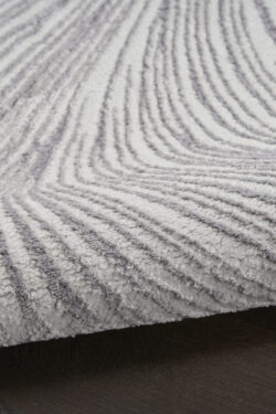 Introduce a touch of modern elegance to your home with this grey abstract rug from the DKNY Central Park West collection. The swirling pattern creates a sense of flow that effortlessly ties your space together. Finished with a high-low weave and subtle sheen that adds movement and depth to any room.