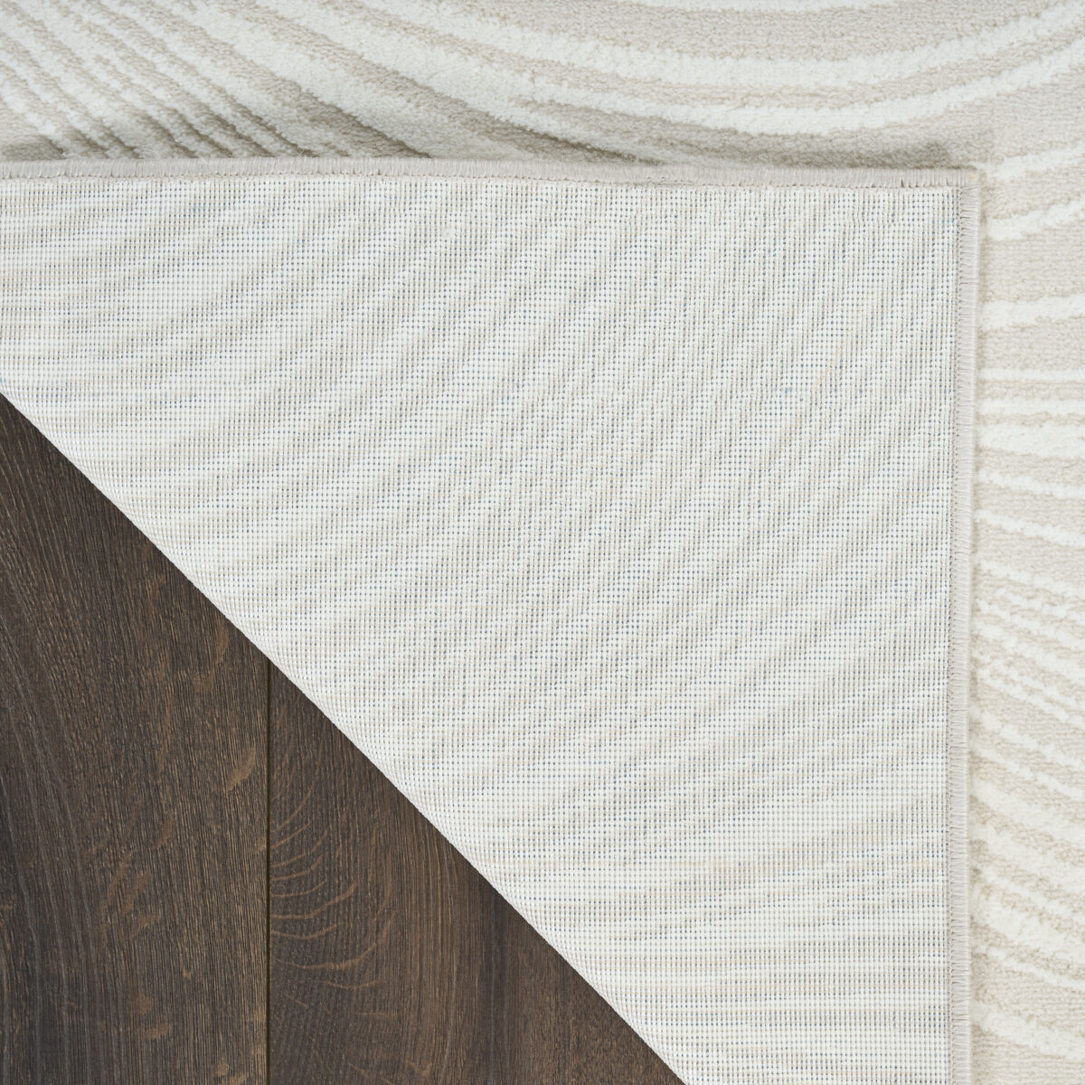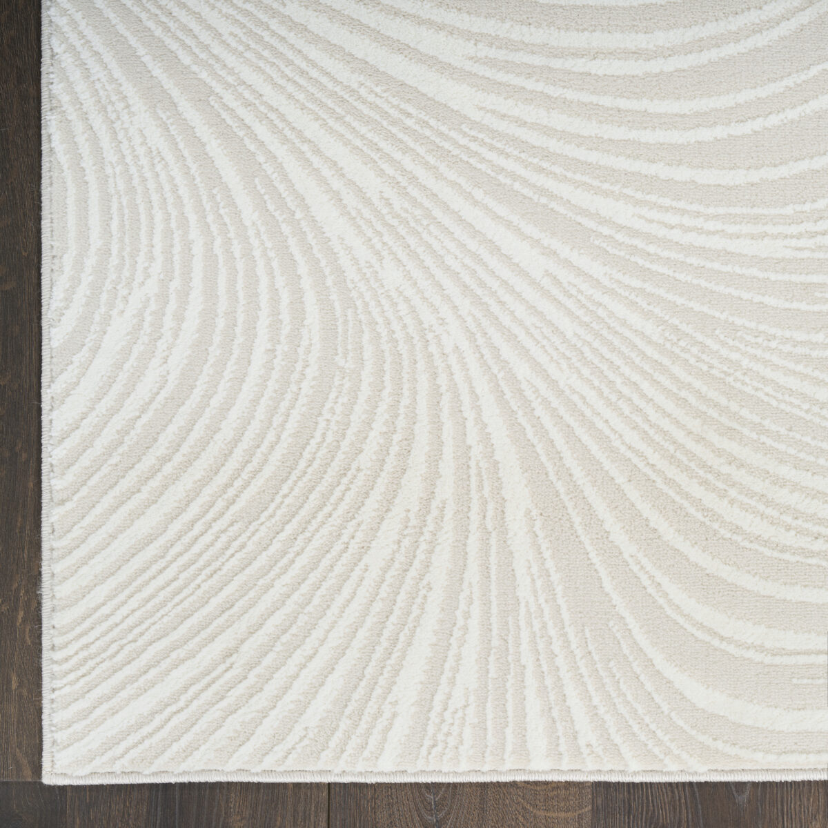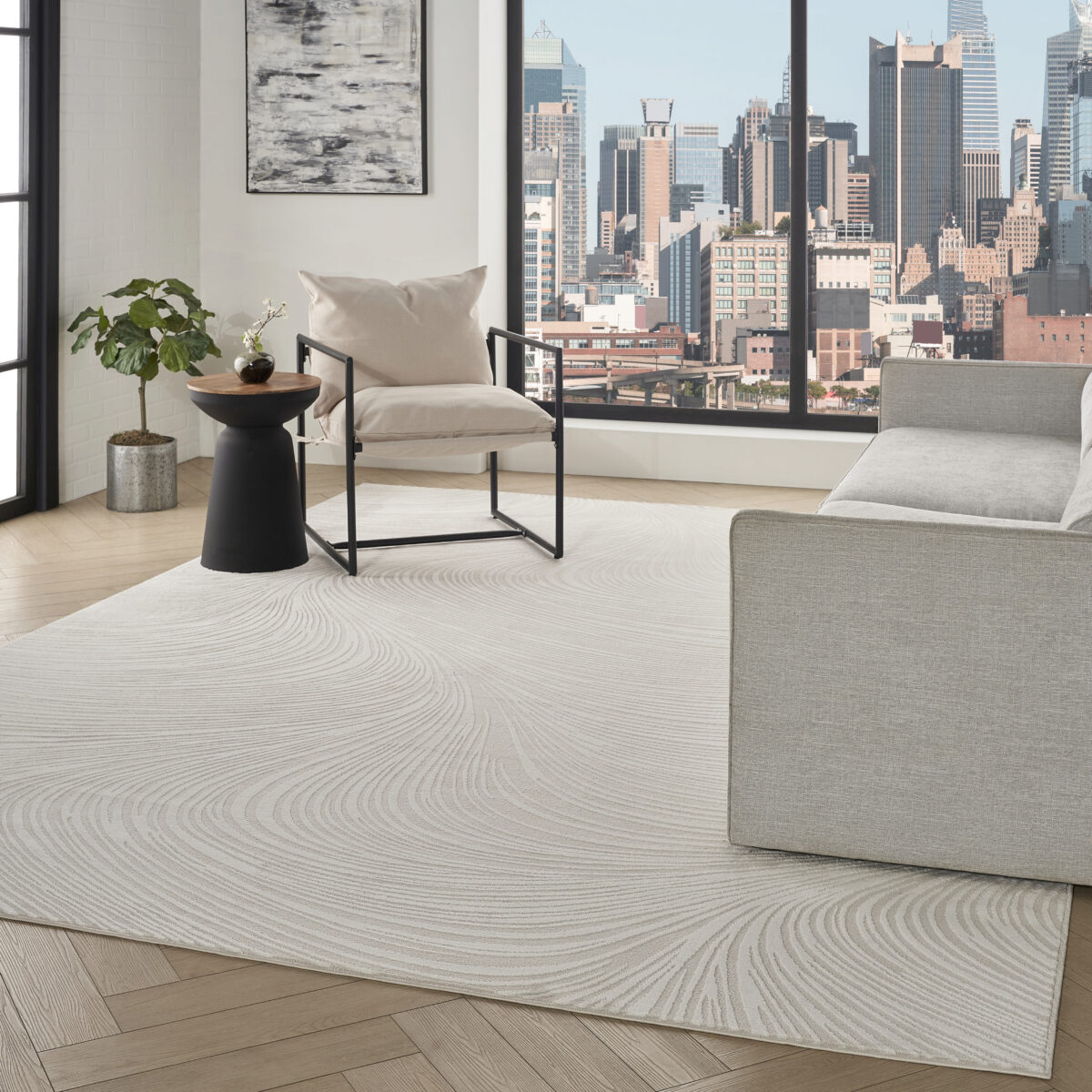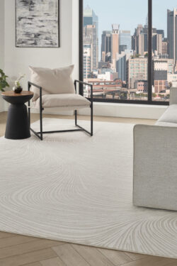 Introduce a touch of modern elegance to your home with this ivory abstract rug from the DKNY Central Park West collection. The swirling pattern creates a sense of flow that effortlessly ties your space together. Finished with a high-low weave and subtle sheen that adds movement and depth to any room.
