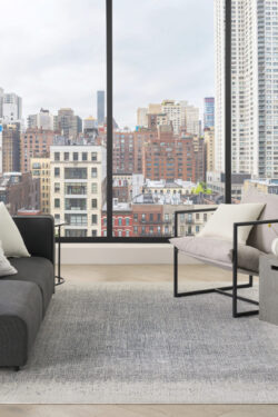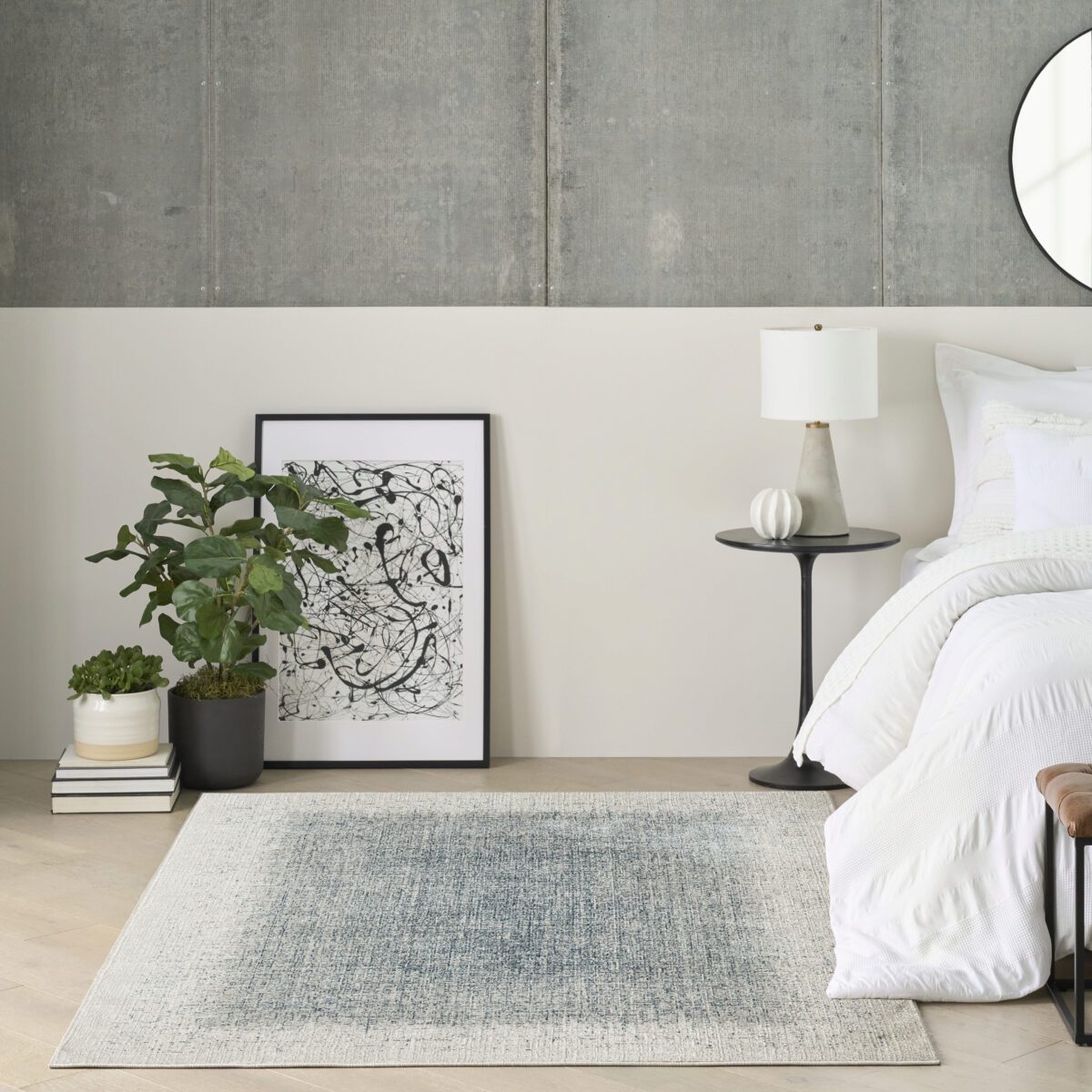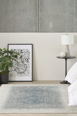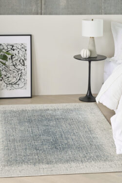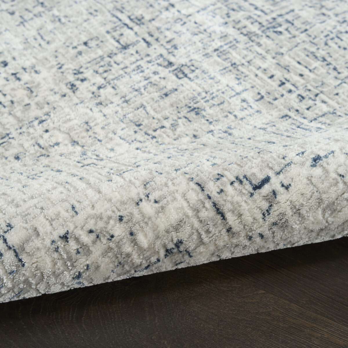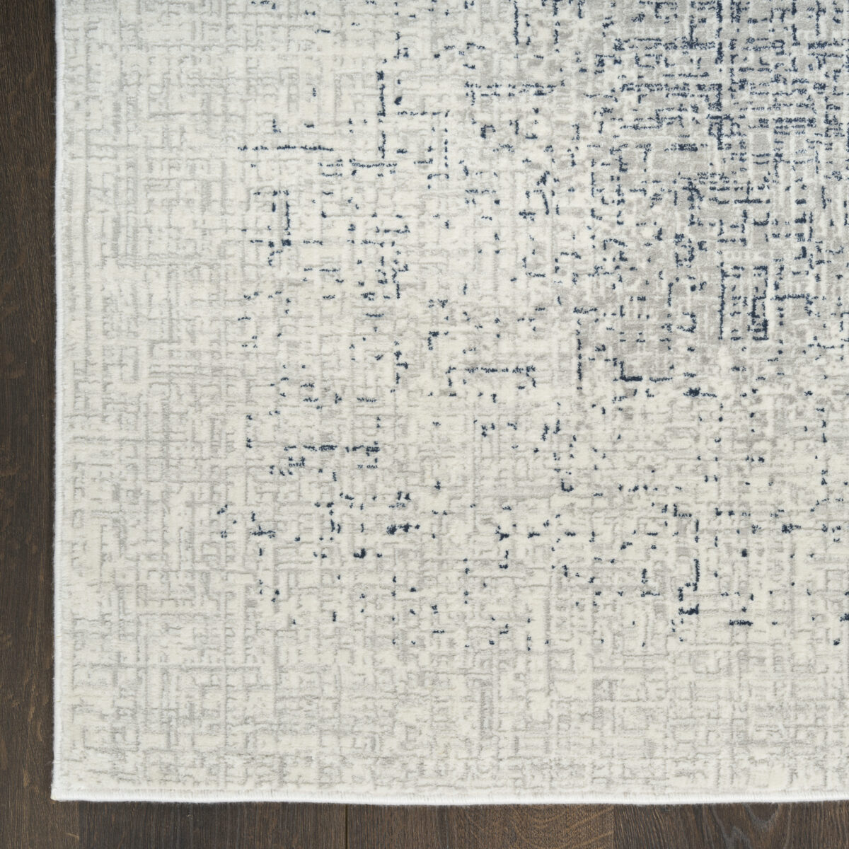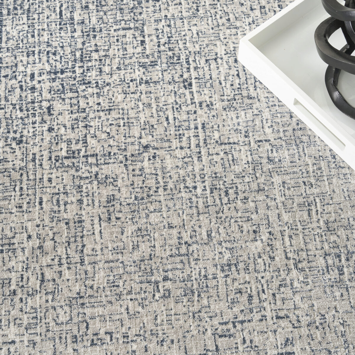 Elevate your space with the sleek and modern appeal of this blue and ivory abstract rug from the DKNY Grand Street collection. The grid-like weave, inspired by bustling city blocks, features subtle tonal variations designed to draw the eye. Made from softly textured fibers finished with a silk-like sheen for added depth.