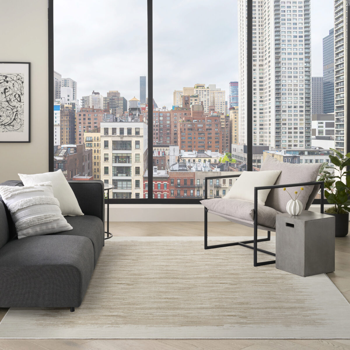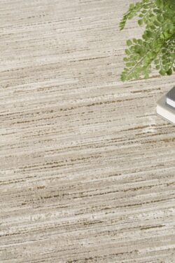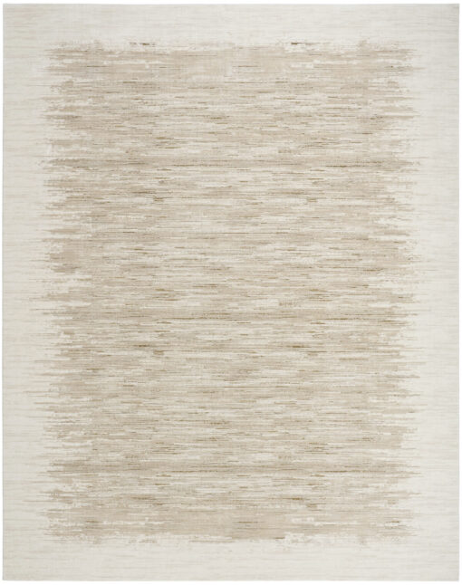 Modern and understated, this abstract taupe and ivory rug from the DKNY Grand Street collection features a tonal linear pattern that creates a subtle ombre effect. A silk-like sheen adds a soft glow, while the low-profile, easy-care construction makes it ideal for everyday living.