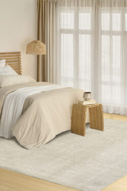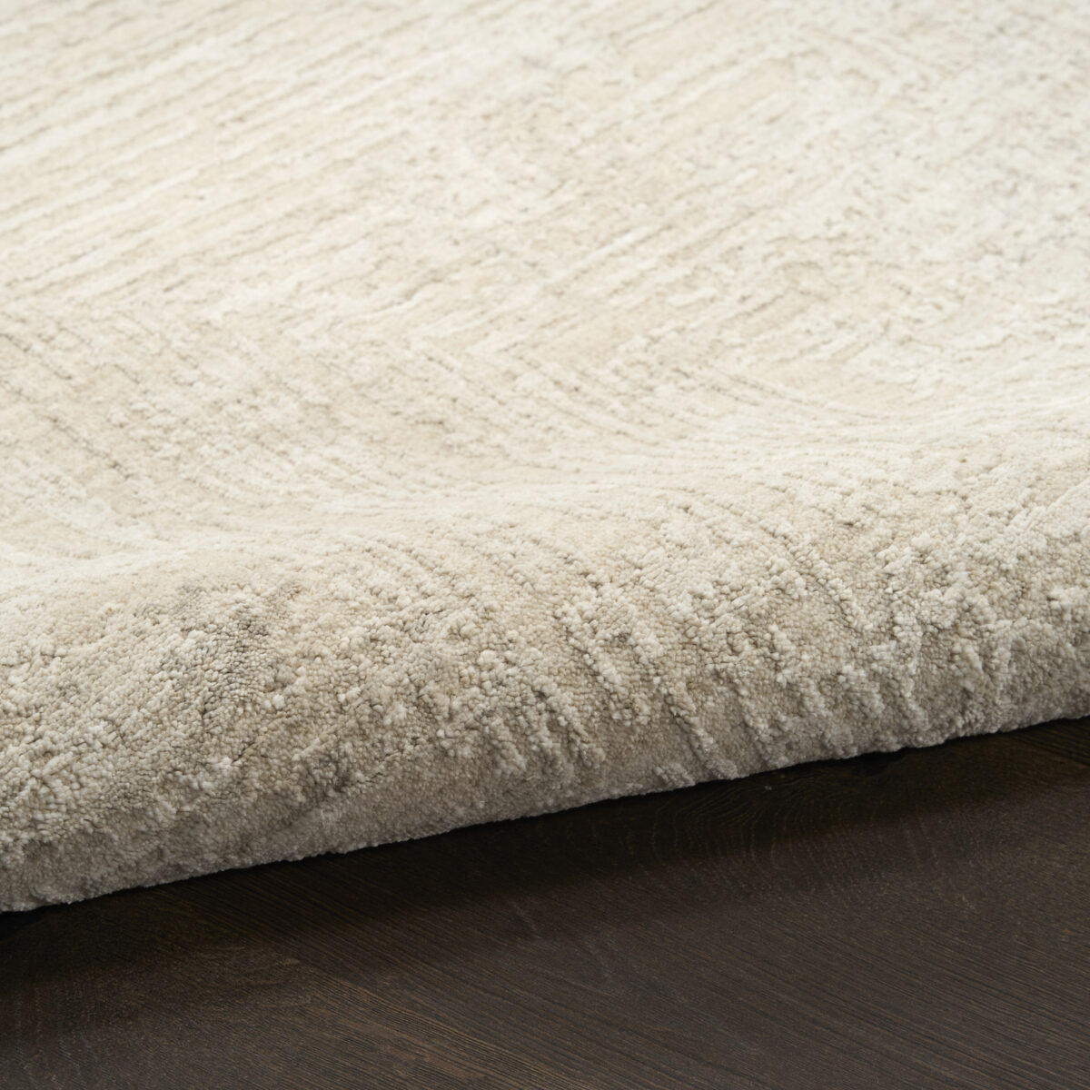 Ground your space in clean, understated style with this ivory and beige rug from the DKNY Madison Square collection. The silk-like sheen and fringe add dimensional appeal to any room.