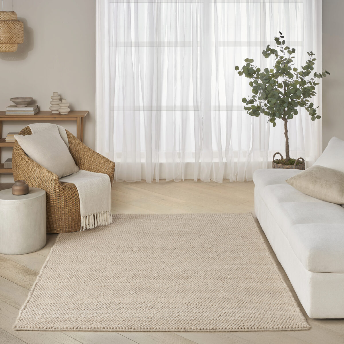 Introduce spa-like comfort to your decor with this textured beige rug from the DKNY Pure Knots collection. The plush, chunky loop texture and soft tonal palette invites a relaxed feel to any space.