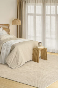 Ivory and taupe threads weave warmth into this relaxed, tonal rug. With soft texture and a lasting wool blend, its made for easy, everyday comfort in a variety of spaces.