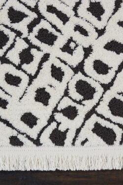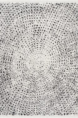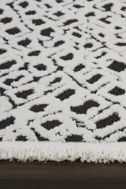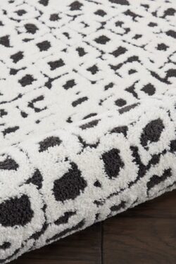 Featuring an eye-catching web-like spiral pattern in a simple black and white colour palette, this Kamala area rug from Nourison is all about easy decor and sensational style. These fringed shag rugs are powerloomed for incredible look, feel, and wear.