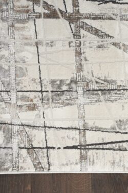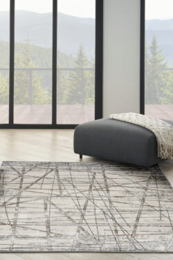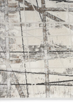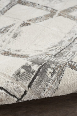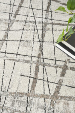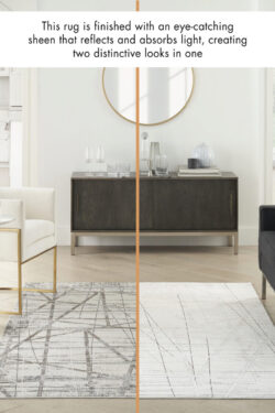 Make a bold statement with this abstract rug from the Desire Collection. Presented in neutral shades of grey and silver, it features a crisscross linear pattern with carved accents that add depth. This modern rug is made from softly textured polyester finished with an eye-catching sheen that changes colour from black to silver under ambient lighting.