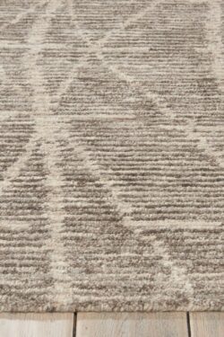 Like sand rich in quartzite crystals, this amazing Ellora area rug fairly gleams with elusive beauty. An abstract pattern of intersecting lines creates an etched effect of elongated diamonds, with texture enhanced by magnificent hand-knotting. Superb quality is evident in this versatile area rug designed for the sophisticated room.