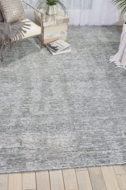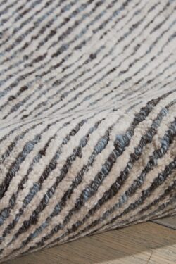 Dress your fashionable room in Ellora, the superb contemporary collection of area rugs exclusively created by Nourison. This signature collection of fine rugs lifts any space to a new level of sophistication. Choose from an array of artistic designs that feature intriguing abstract linear patterns and soft washes of colour. The Ellora palette explores a range of modern neutrals in subtle transitional tones. Hand-knotted in a high-performance blend of wool-rayon-cotton, these alluring area rugs have a soft, thick texture you will find irresistible – the ideal combination of quality, comfort, and elegant modern design.