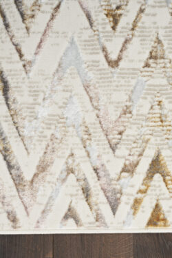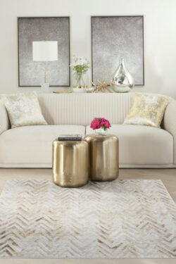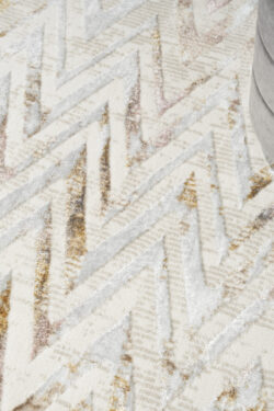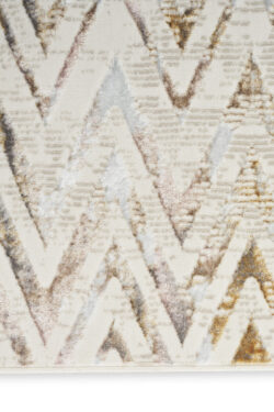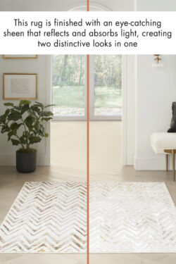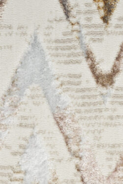 The classic chevron pattern gets a modern update with this contemporary rug from the Glitz Collection. The geometric design is presented in soft multi-coloured shades with a subtly distressed finish and shimmering accents that shift under different lighting. Made from softly textured, easy to clean polyester yarns.