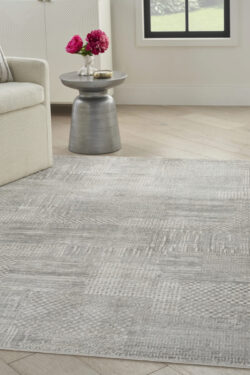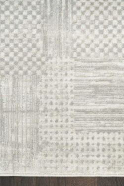Bring refreshing style to your home with this abstract rug from the Glitz Collection. The patchwork of lines and geometric patterns is presented in understated shades of silver and grey, which is enhanced with a luxurious sheen that shifts in tone with changes in ambient light. Made from softly textured polyester yarns that are easy to clean.