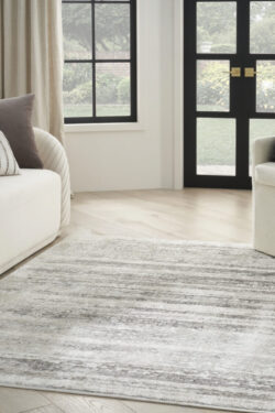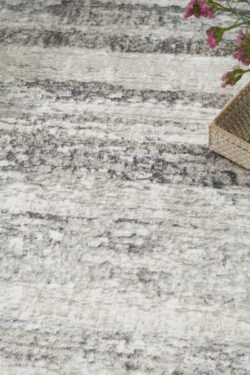 Enhance your space with the sophisticated look of this abstract rug from the Glitz Collection. Neutral shades of cream and grey create a sense of depth made even more brilliant by a metallic sheen. Made from softly textured polyester yarns that are easy to clean.
