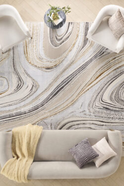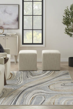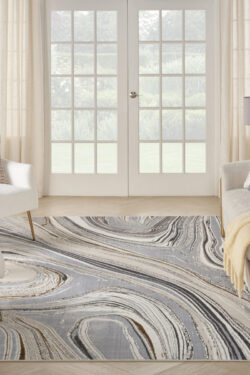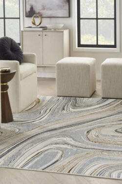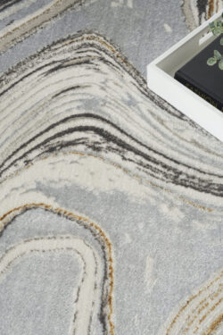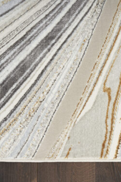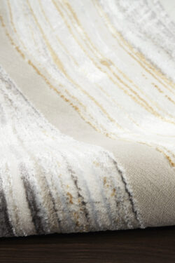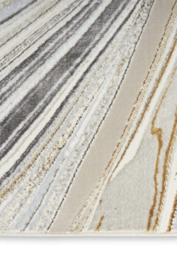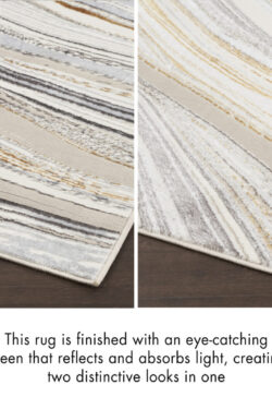 Refresh your home with the ultra-refined style of this abstract rug from the Glitz Collection. Elegant curves in gold, grey, and silver are highlighted with a brilliant sheen that adds an elevated feel to your living room, dining room, or bedroom dcor. This modern rug is machine-made from polyester in an incredibly soft, low-profile construction thats easy to clean.