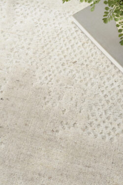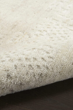 Ground your home in the timeless charm of this abstract rug from the Harmony Collection. The neutral ivory palette invites an elegant and calming feel, highlighted by a delicately layered mix of geometric patterns and solid colors. This rug is handmade from a blend of wool and rayon and polyester for lasting style, with a high-low cut pile that adds intriguing texture.