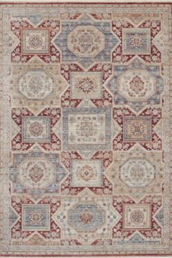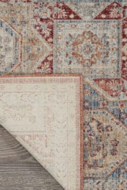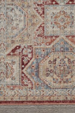 This Homestead selection features an elegant repeat pattern of six-sided shields, anchored by a centre medallion and bordered in classic Persian rug style. Delicate detailing and vintage fading add warmth to the soft and dense low pile. Luminous in light blue on warm brick; with stain-repellent Nouri-Guard protection. Treated with Nouri-Guard™ fiber protectant for lasting, stain-resistant beauty.