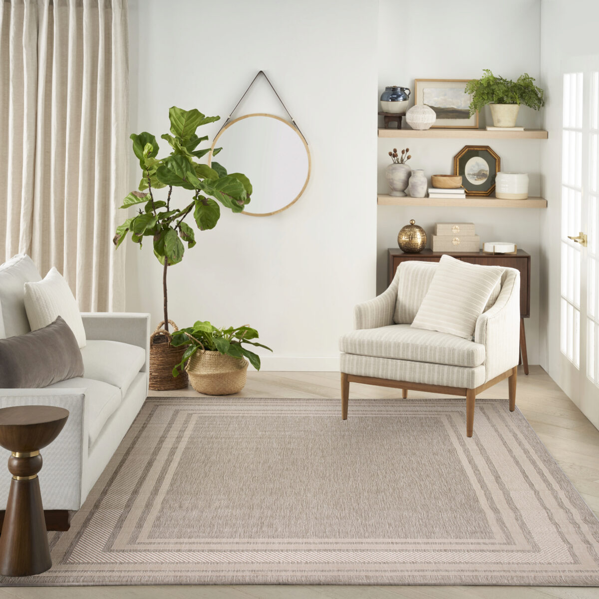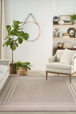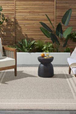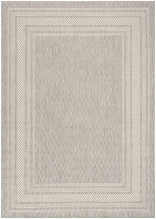 Transform any space with this modern grey outdoor rug from the Horizon collection. Showcasing a striking bordered design, this rug beautifully frames your space while adding structure to patio conversation or living room and dining room seating areas. The two-tone palette, enhanced with subtle tonal variations, helps draw the eye while creating a focal point for your décor. Made from a blend of polyester and polypropylene finished with a subtle high-low pile.