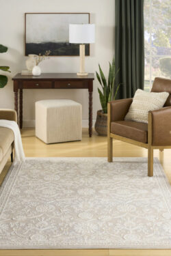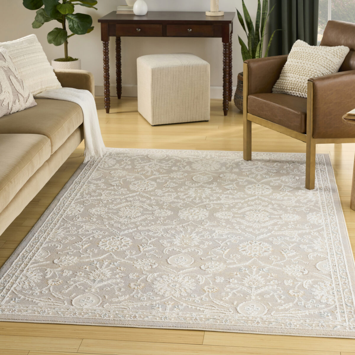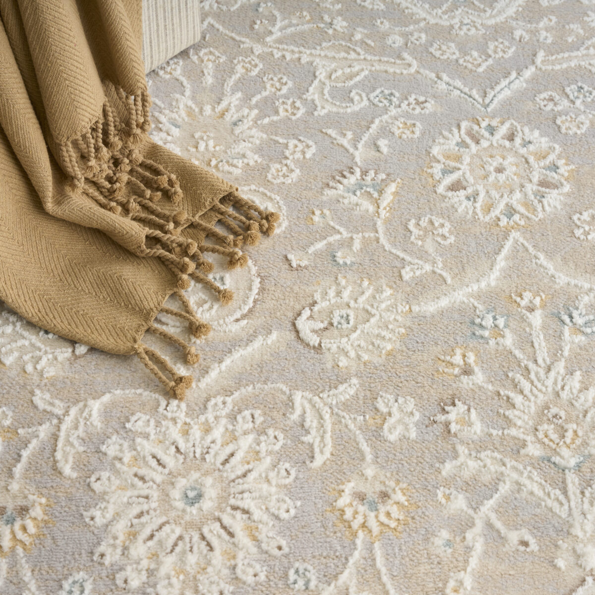 Invite timeless charm to your space with this light grey vintage-inspired rug from the Isla collection. The intricate floral pattern and subtle high-low pile add just the right touch of warmth and dimension to your space. Ideal for softening furniture in a sleek living room or grounding a cozy bedroom. Made from polypropylene and polyester.