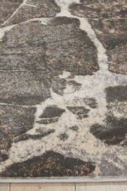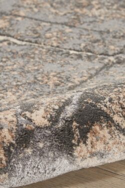 A stunning interplay of tones, shading, and texture make this Kathy Ireland® Home Heritage Collection rug truly unique. Earth and stone hues invoke images of urban life and the marks of time from which it draws its character and spirit. A contemporary statement piece sure to complement any room in your home.