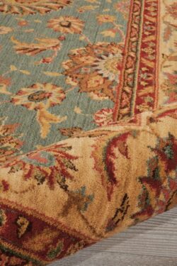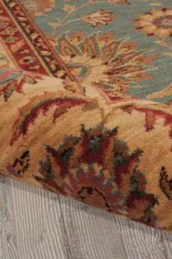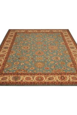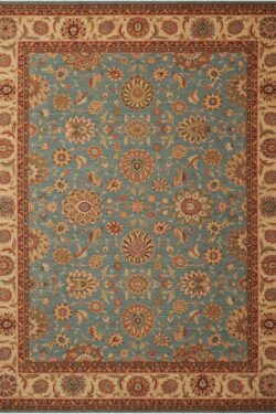 On a magical pond of celestial aqua blue, delicate flowers in stylized shapes float effortlessly across this magnificent rug. Sprightly sienna and golden ivory add intensity and luminosity to the striking field of colour. A lovely dreamscape for your home decor.