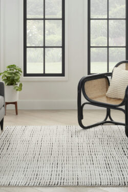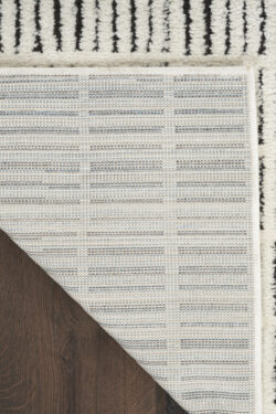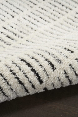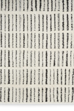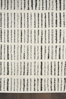 Invite relaxing energy into your home with this minimalist black and white rug from the Modern Comfort Collection. The geometric pattern, made from medium-thick yarns, adds style and functionality to your living room or bedroom. Machine-made from polyester for low maintenance and easy cleaning.
