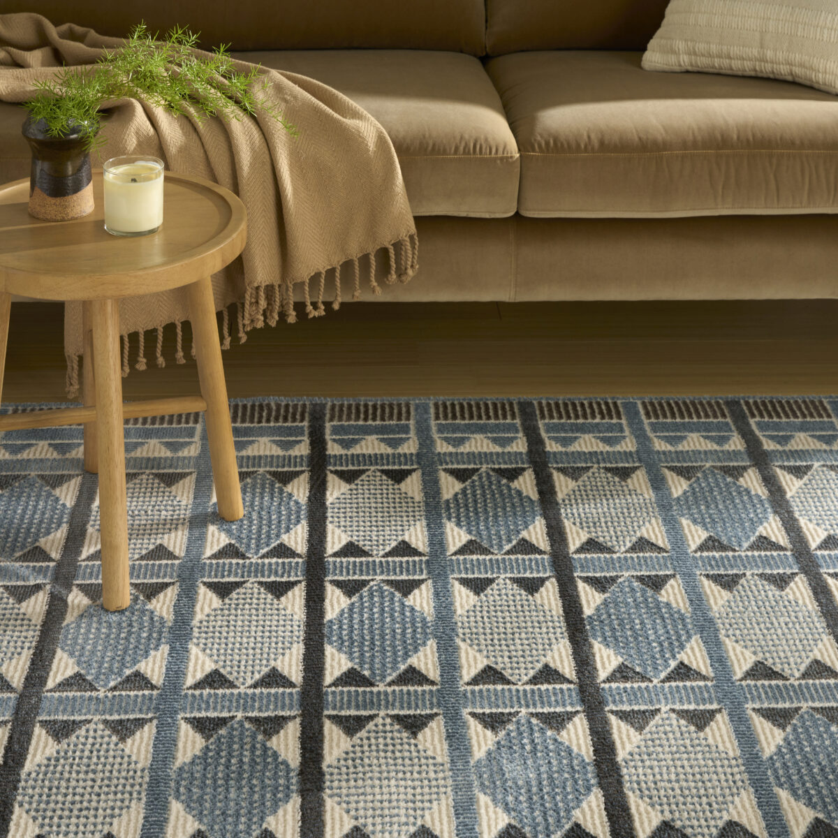 Invite a sense of calm to your décor with this blue geometric rug from the Nordic collection. The Scandinavian-inspired diamond pattern emphasizes symmetry and simplicity, bringing a clean and balanced look into your surroundings. This modern rug is enhanced by a subtle shimmer and high-low pile for added movement and dimension.