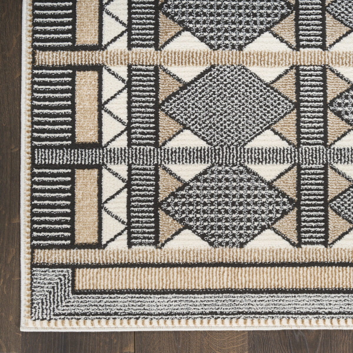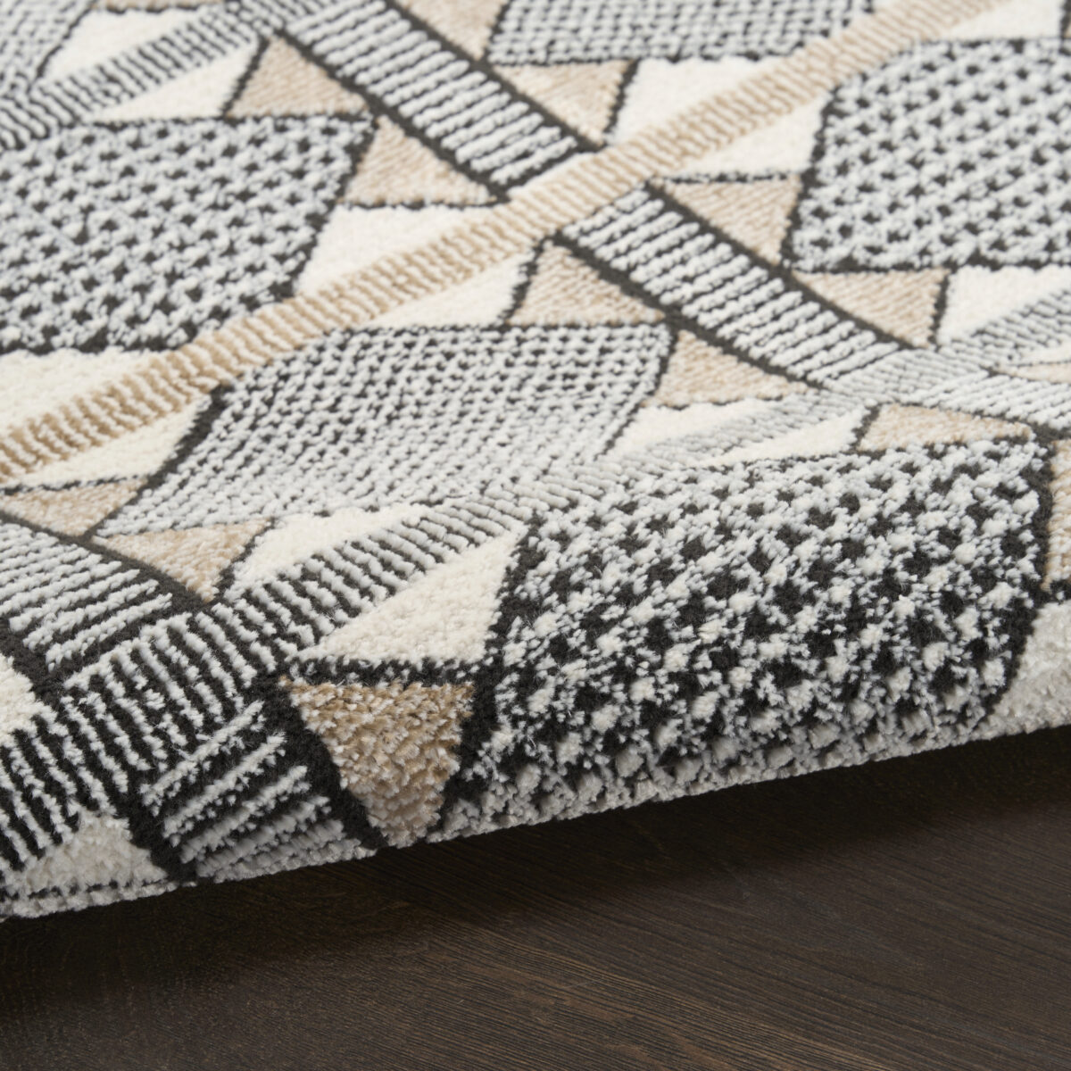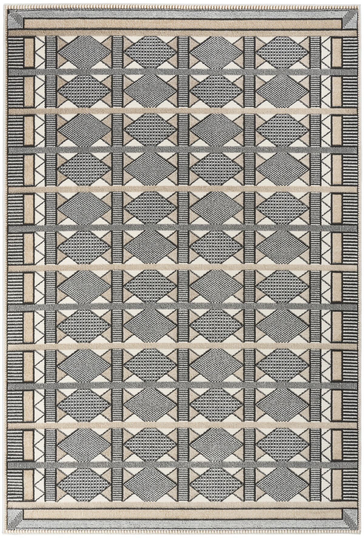 Invite a sense of calm to your décor with this beige and black geometric rug from the Nordic collection. The Scandinavian-inspired diamond pattern emphasizes symmetry and simplicity, bringing a clean and balanced look into your surroundings. This modern rug is enhanced by a subtle shimmer and high-low pile for added movement and dimension.