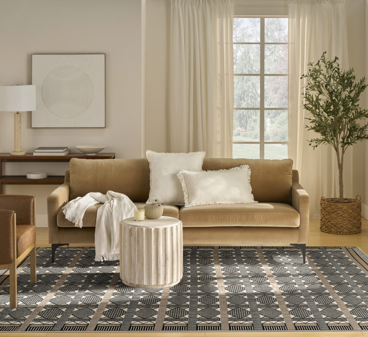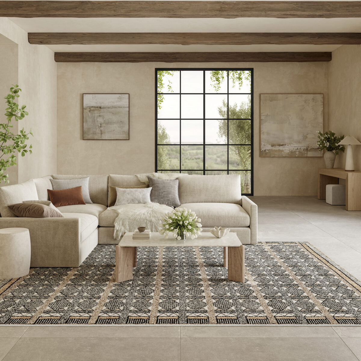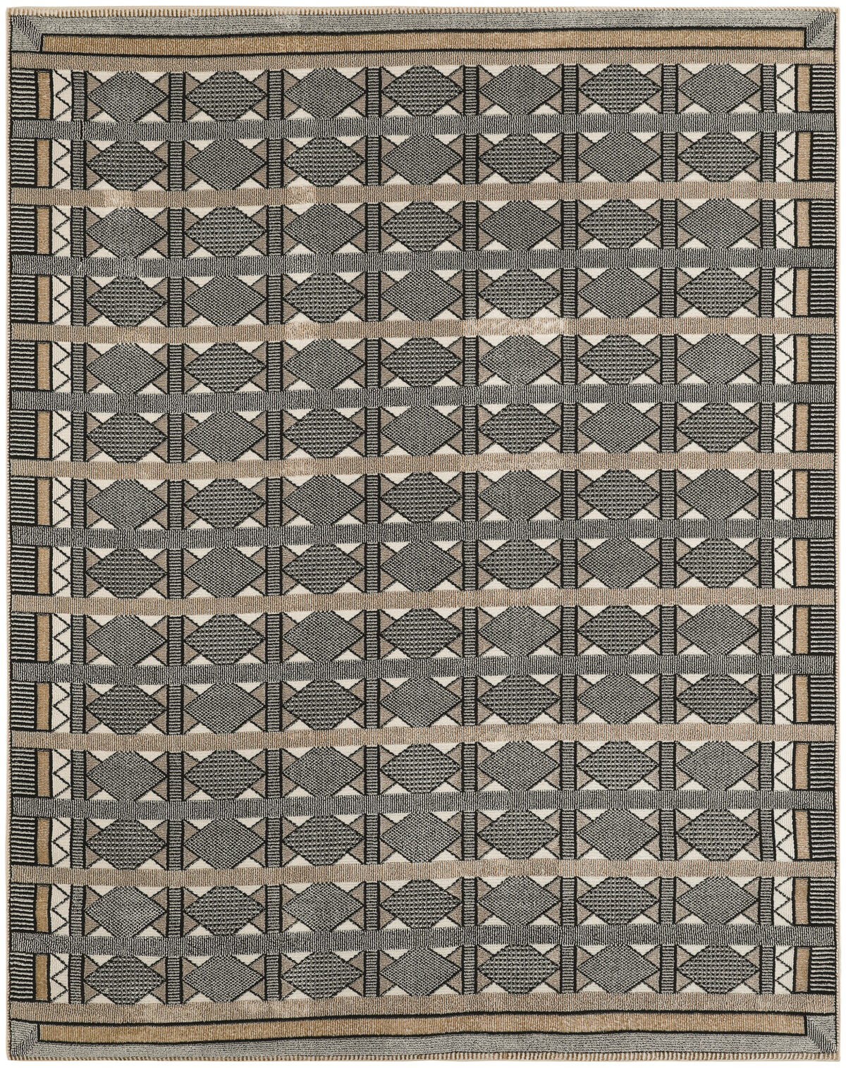 Invite a sense of calm to your décor with this beige and black geometric rug from the Nordic collection. The Scandinavian-inspired diamond pattern emphasizes symmetry and simplicity, bringing a clean and balanced look into your surroundings. This modern rug is enhanced by a subtle shimmer and high-low pile for added movement and dimension.