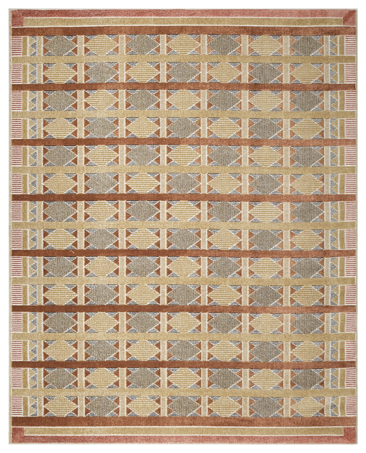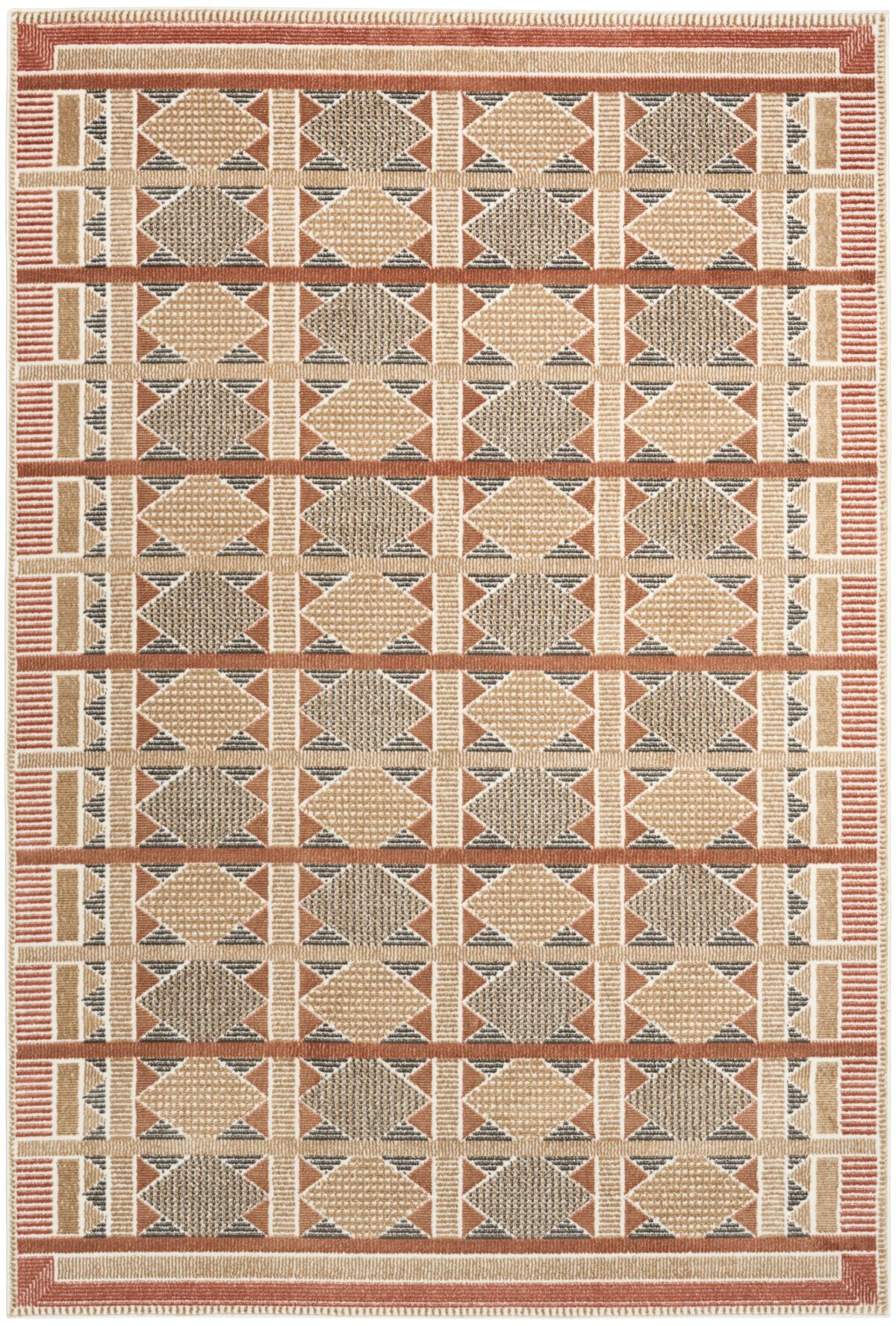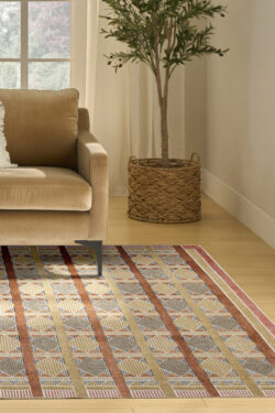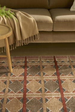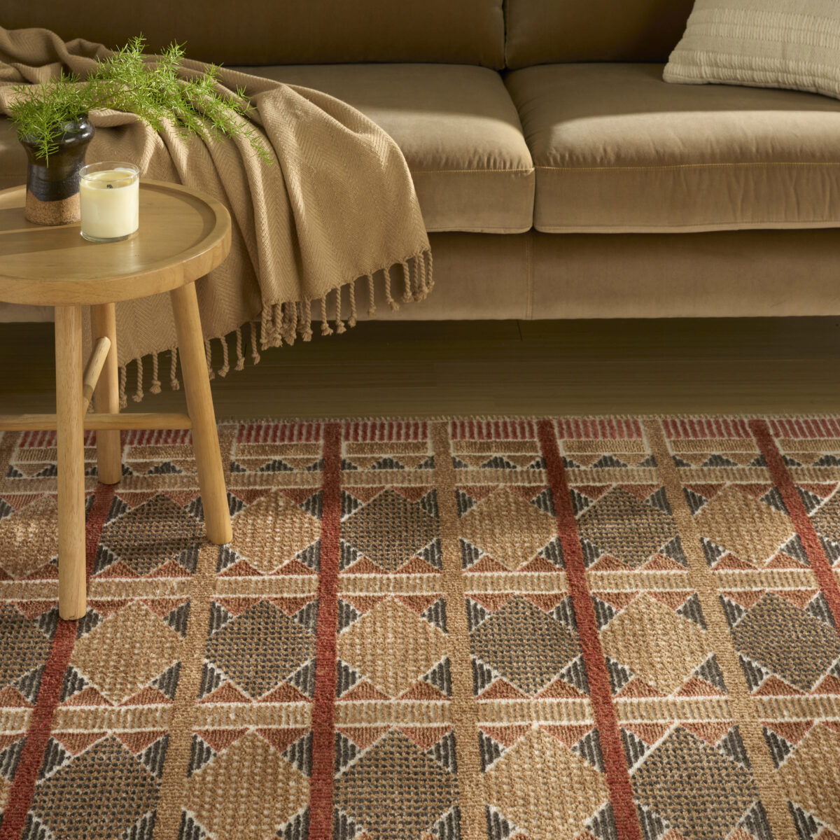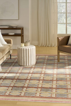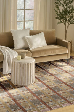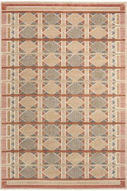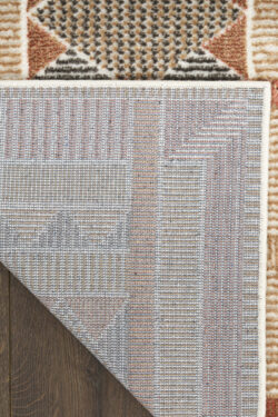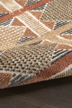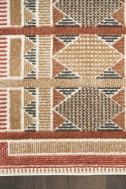 Invite a sense of calm to your décor with this rust, blue, and tan geometric rug from the Nordic collection. The Scandinavian-inspired diamond pattern emphasizes symmetry and simplicity, bringing a clean and balanced look into your surroundings. This modern rug is enhanced by a subtle shimmer and high-low pile for added movement and dimension.